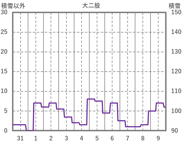 | 日 | 時 | 気温 | 降水 | 風向/風速 | 日照 | 積雪 | 降雪 |