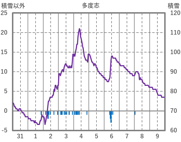 | 日 | 時 | 気温 | 降水 | 風向/風速 | 日照 | 積雪 | 降雪 |