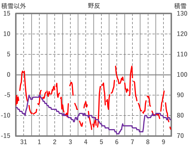 | 日 | 時 | 気温 | 降水 | 風向/風速 | 日照 | 積雪 | 降雪 |