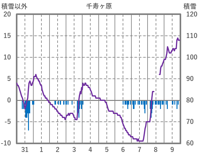 | 日 | 時 | 気温 | 降水 | 風向/風速 | 日照 | 積雪 | 降雪 |