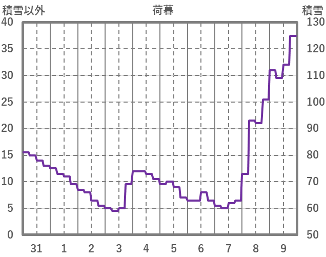 | 日 | 時 | 気温 | 降水 | 風向/風速 | 日照 | 積雪 | 降雪 |