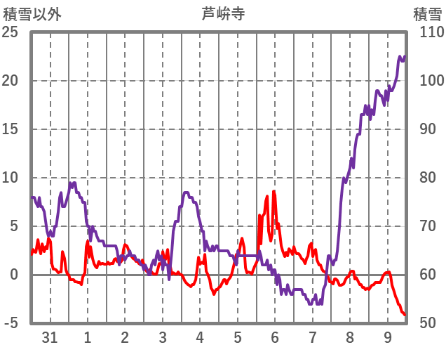 | 日 | 時 | 気温 | 降水 | 風向/風速 | 日照 | 積雪 | 降雪 |