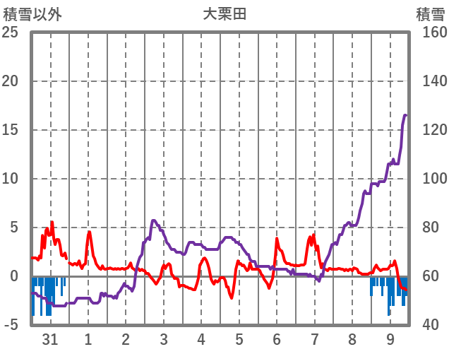 | 日 | 時 | 気温 | 降水 | 風向/風速 | 日照 | 積雪 | 降雪 |