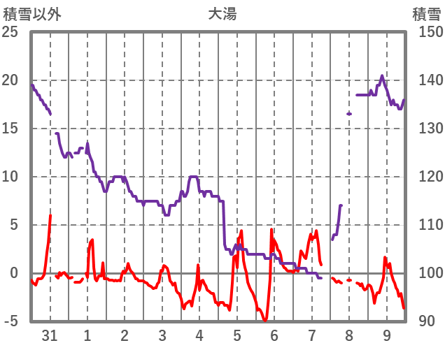 | 日 | 時 | 気温 | 降水 | 風向/風速 | 日照 | 積雪 | 降雪 |