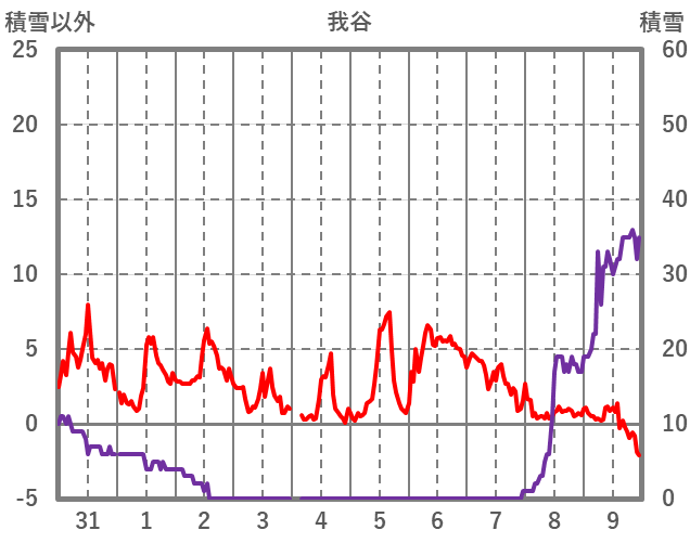| 日 | 時 | 気温 | 降水 | 風向/風速 | 日照 | 積雪 | 降雪 |