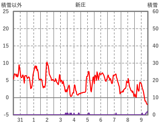 | 日 | 時 | 気温 | 降水 | 風向/風速 | 日照 | 積雪 | 降雪 |