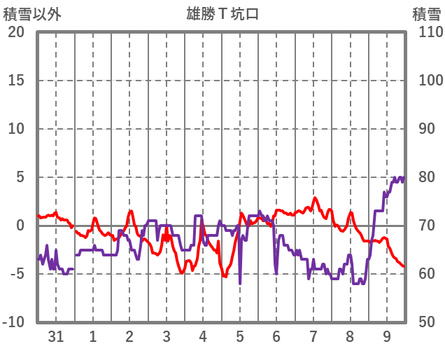 | 日 | 時 | 気温 | 降水 | 風向/風速 | 日照 | 積雪 | 降雪 |