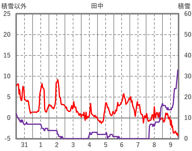 | 日 | 時 | 気温 | 降水 | 風向/風速 | 日照 | 積雪 | 降雪 |
