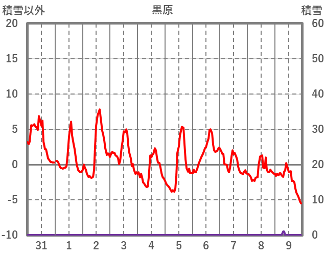 | 日 | 時 | 気温 | 降水 | 風向/風速 | 日照 | 積雪 | 降雪 |