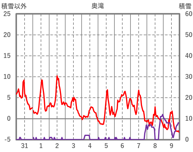 | 日 | 時 | 気温 | 降水 | 風向/風速 | 日照 | 積雪 | 降雪 |