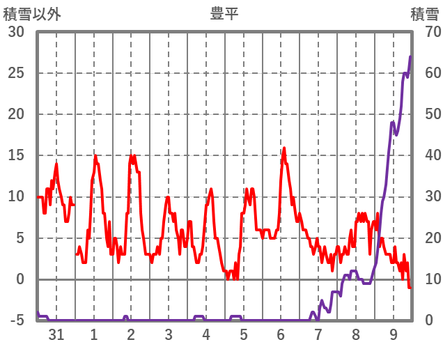 | 日 | 時 | 気温 | 降水 | 風向/風速 | 日照 | 積雪 | 降雪 |