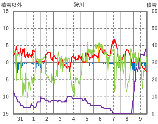 | 日 | 時 | 気温 | 降水 | 風向/風速 | 日照 | 積雪 | 降雪 |