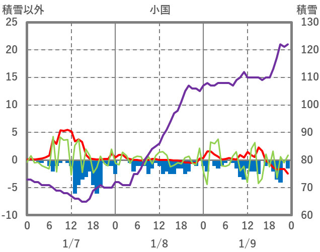 | 日 | 時 | 気温 | 降水 | 風向/風速 | 日照 | 積雪 | 降雪 |