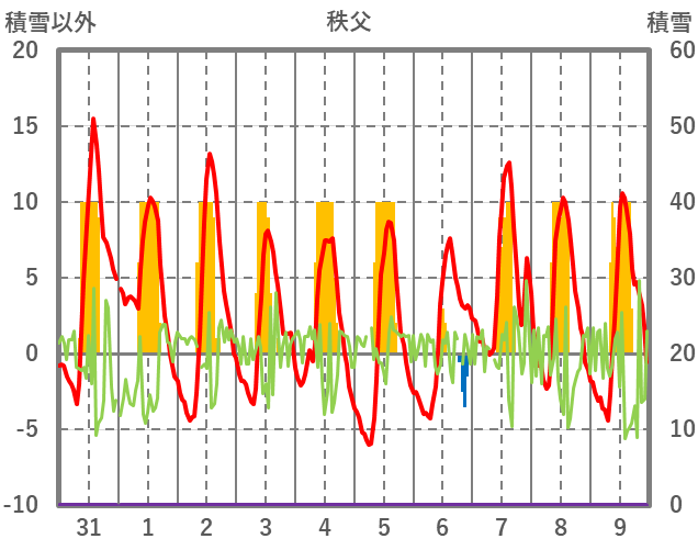 | 日 | 時 | 気温 | 降水 | 風向/風速 | 日照 | 積雪 | 降雪 |