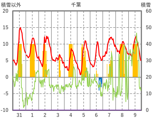 | 日 | 時 | 気温 | 降水 | 風向/風速 | 日照 | 積雪 | 降雪 |