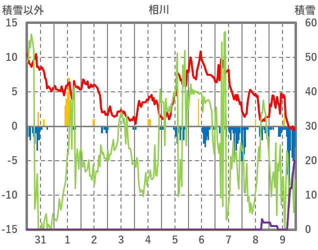 | 日 | 時 | 気温 | 降水 | 風向/風速 | 日照 | 積雪 | 降雪 |