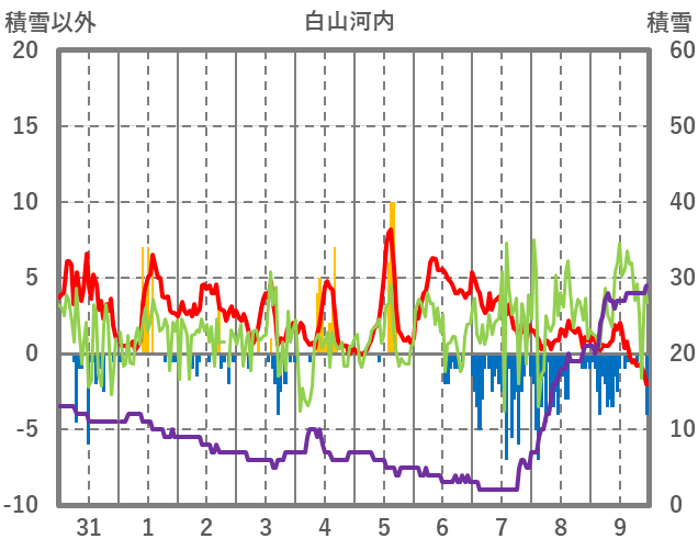 | 日 | 時 | 気温 | 降水 | 風向/風速 | 日照 | 積雪 | 降雪 |