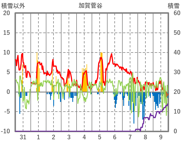| 日 | 時 | 気温 | 降水 | 風向/風速 | 日照 | 積雪 | 降雪 |
