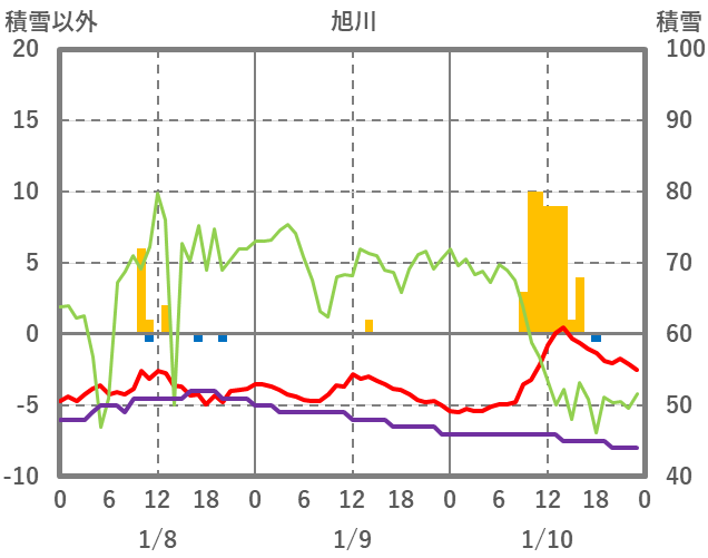 | 日 | 時 | 気温 | 降水 | 風向/風速 | 日照 | 積雪 | 降雪 |