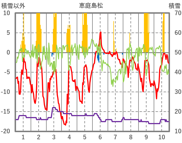 | 日 | 時 | 気温 | 降水 | 風向/風速 | 日照 | 積雪 | 降雪 |
