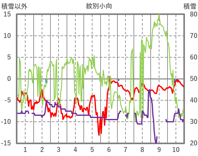 | 日 | 時 | 気温 | 降水 | 風向/風速 | 日照 | 積雪 | 降雪 |