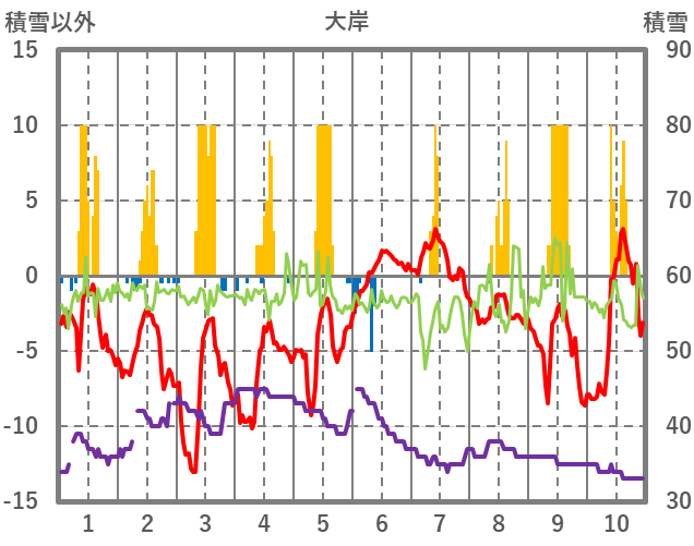 | 日 | 時 | 気温 | 降水 | 風向/風速 | 日照 | 積雪 | 降雪 |