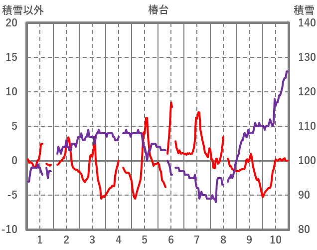 | 日 | 時 | 気温 | 降水 | 風向/風速 | 日照 | 積雪 | 降雪 |