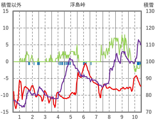 | 日 | 時 | 気温 | 降水 | 風向/風速 | 日照 | 積雪 | 降雪 |