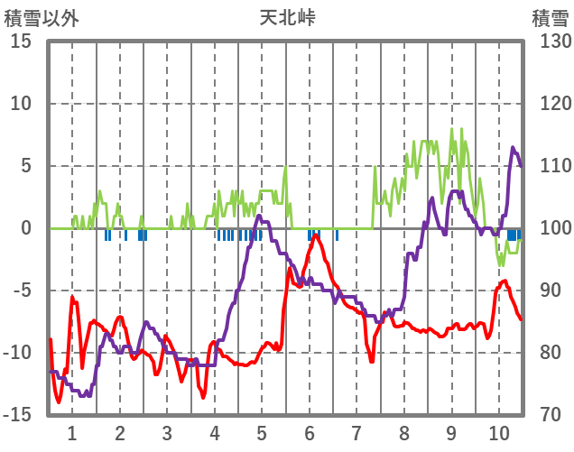 | 日 | 時 | 気温 | 降水 | 風向/風速 | 日照 | 積雪 | 降雪 |