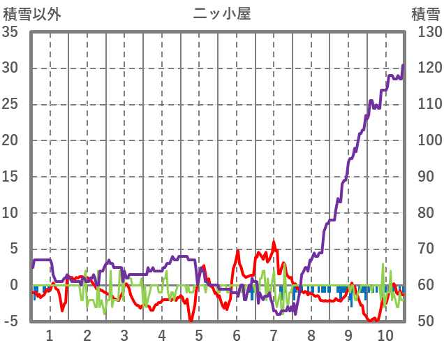 | 日 | 時 | 気温 | 降水 | 風向/風速 | 日照 | 積雪 | 降雪 |