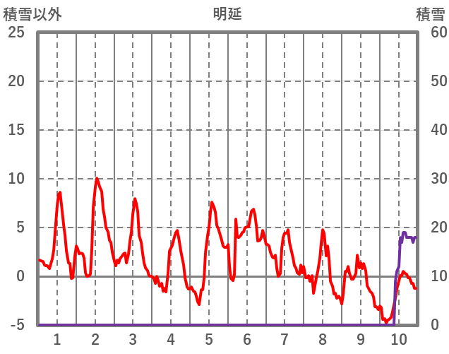 | 日 | 時 | 気温 | 降水 | 風向/風速 | 日照 | 積雪 | 降雪 |