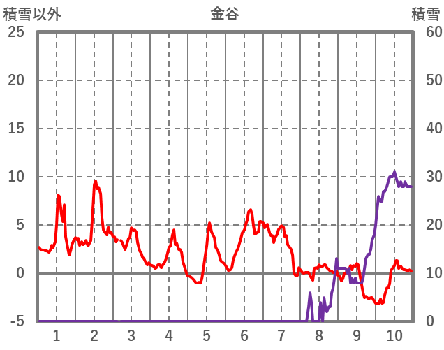 | 日 | 時 | 気温 | 降水 | 風向/風速 | 日照 | 積雪 | 降雪 |