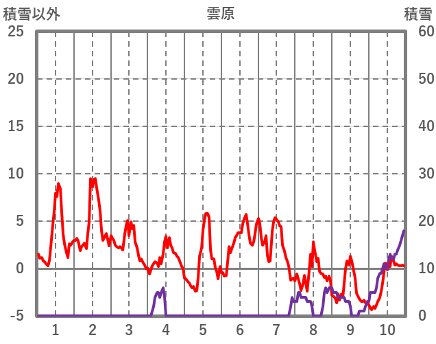 | 日 | 時 | 気温 | 降水 | 風向/風速 | 日照 | 積雪 | 降雪 |