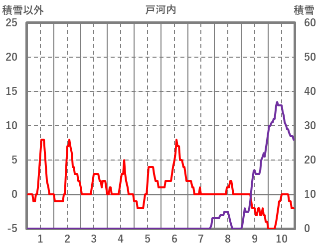 | 日 | 時 | 気温 | 降水 | 風向/風速 | 日照 | 積雪 | 降雪 |