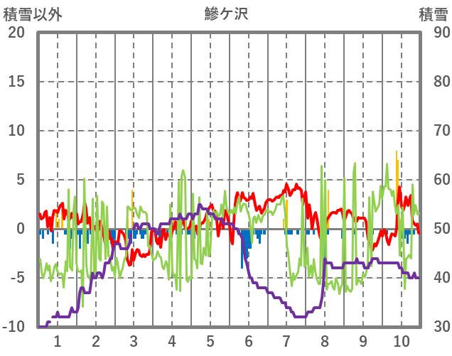 | 日 | 時 | 気温 | 降水 | 風向/風速 | 日照 | 積雪 | 降雪 |