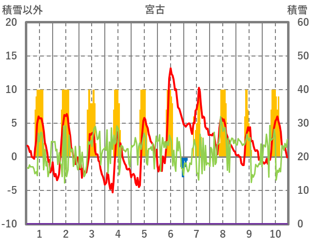 | 日 | 時 | 気温 | 降水 | 風向/風速 | 日照 | 積雪 | 降雪 |