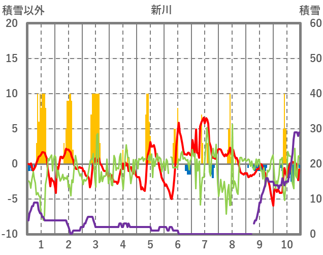 | 日 | 時 | 気温 | 降水 | 風向/風速 | 日照 | 積雪 | 降雪 |