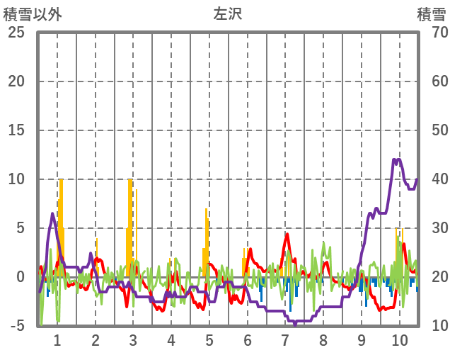 | 日 | 時 | 気温 | 降水 | 風向/風速 | 日照 | 積雪 | 降雪 |