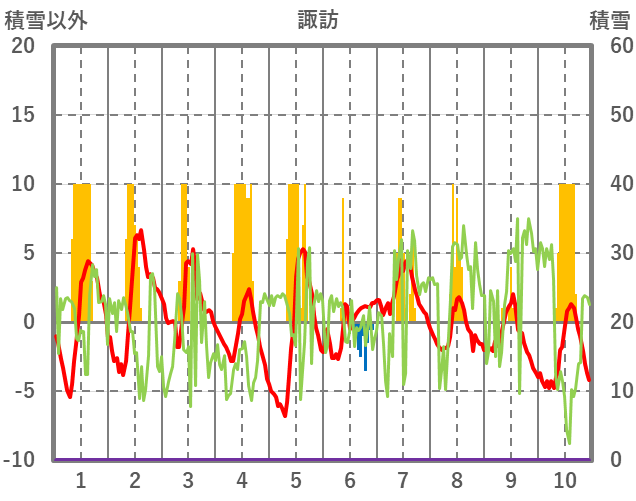 | 日 | 時 | 気温 | 降水 | 風向/風速 | 日照 | 積雪 | 降雪 |