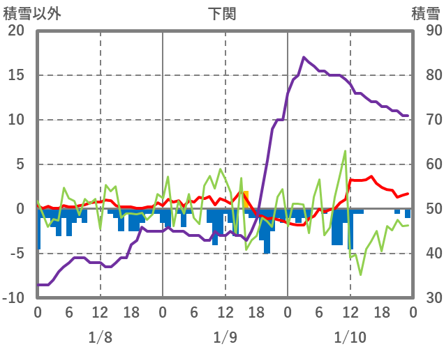 | 日 | 時 | 気温 | 降水 | 風向/風速 | 日照 | 積雪 | 降雪 |