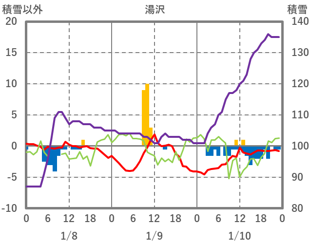 | 日 | 時 | 気温 | 降水 | 風向/風速 | 日照 | 積雪 | 降雪 |