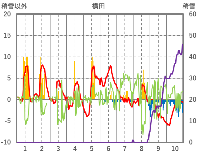 | 日 | 時 | 気温 | 降水 | 風向/風速 | 日照 | 積雪 | 降雪 |
