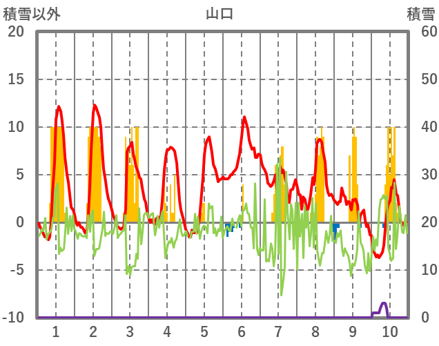| 日 | 時 | 気温 | 降水 | 風向/風速 | 日照 | 積雪 | 降雪 |
