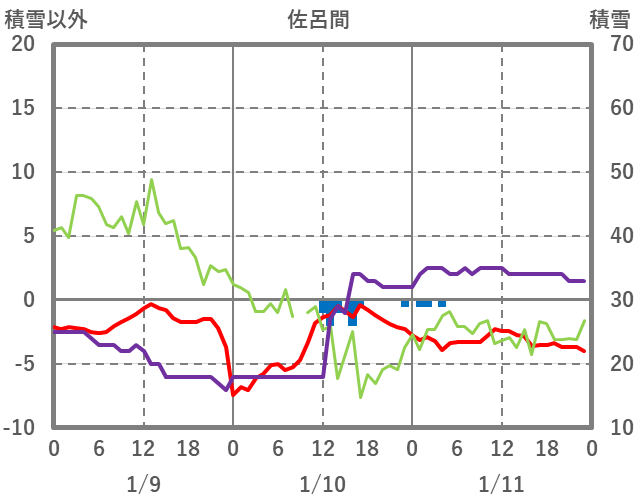 | 日 | 時 | 気温 | 降水 | 風向/風速 | 日照 | 積雪 | 降雪 |