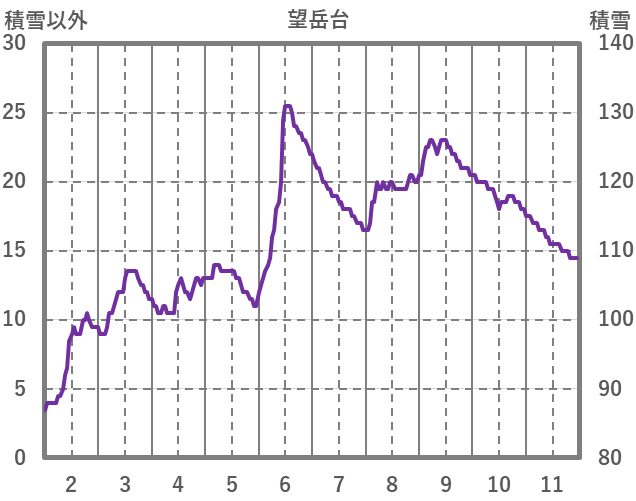 | 日 | 時 | 気温 | 降水 | 風向/風速 | 日照 | 積雪 | 降雪 |