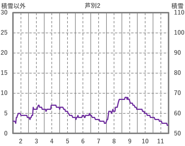 | 日 | 時 | 気温 | 降水 | 風向/風速 | 日照 | 積雪 | 降雪 |