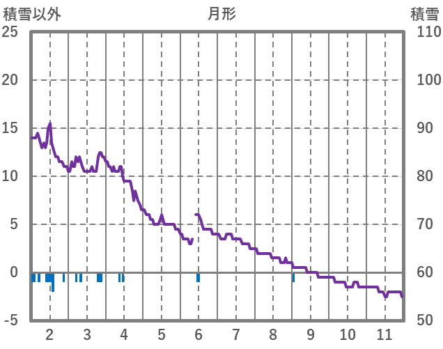 | 日 | 時 | 気温 | 降水 | 風向/風速 | 日照 | 積雪 | 降雪 |