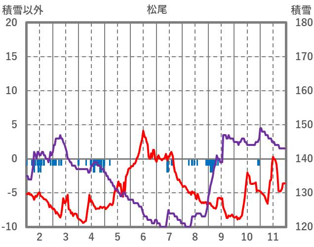 | 日 | 時 | 気温 | 降水 | 風向/風速 | 日照 | 積雪 | 降雪 |