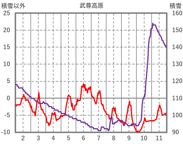 | 日 | 時 | 気温 | 降水 | 風向/風速 | 日照 | 積雪 | 降雪 |