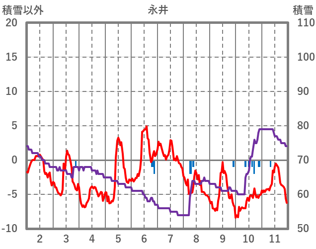 | 日 | 時 | 気温 | 降水 | 風向/風速 | 日照 | 積雪 | 降雪 |